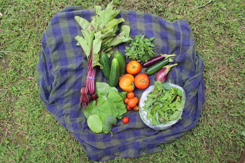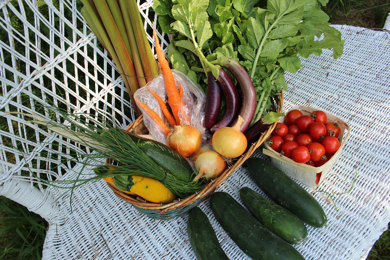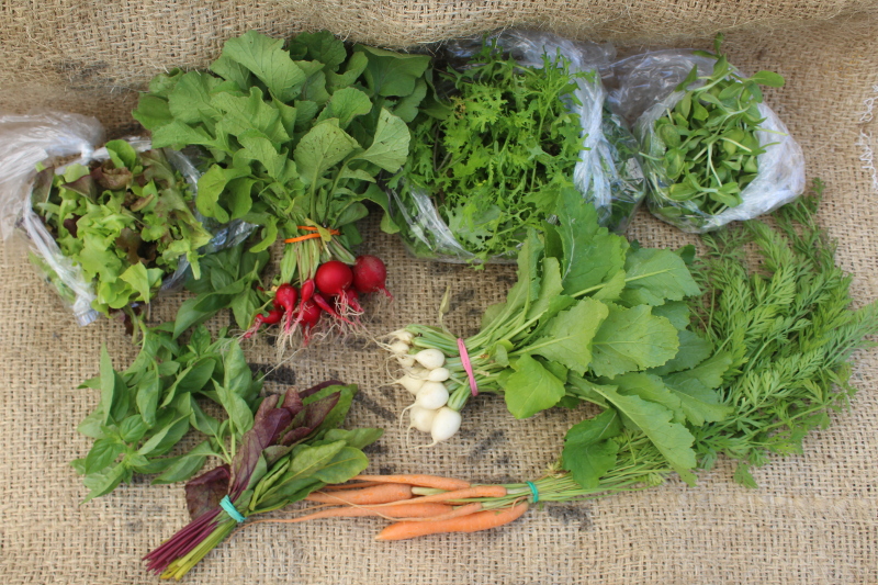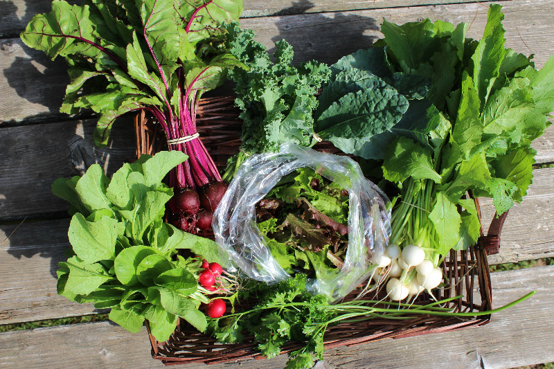 A couple times a season we like to include an item from other local farmers that we haven't been able to grow ourselves, usually due to space constraints. We always ensure that the growing practices are in line with our own before we do so, and we will always let you know when it's not our own. Other than that, it's all from our gardens and greenhouse!